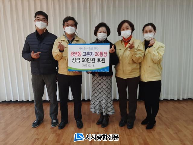 [½Ã»çÁ¾ÇսŹ® = Àå¹Î±Ô ±âÀÚ] ±¤¾ç½Ã ±¤¿µµ¿Àº Áö³ 16ÀÏ °íÃáÀÚ 20Åë ÅëÀåÀÌ Áö¿ª ³» ¾î·Á¿î ÀÌ¿ôÀ» À§ÇÑ ¼º±Ý 60¸¸ ¿øÀ» ±âÅ¹ÇØ ¿Ô´Ù°í ¹àÇû´Ù.