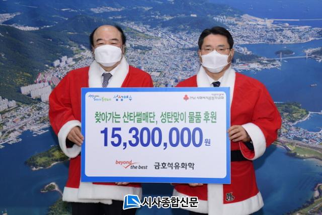 [½Ã»çÁ¾ÇսŹ® = ¿À½ÂÅà ±âÀÚ] ±ÝÈ£¼®À¯ÈÇÐ ¿©¼ö°øÀå(ºÎ»çÀå ¼Û¼®±Ù)Àº ¼ºÅºÀýÀ» ¸Â¾Æ Àú¼Òµæ ¾Æµ¿ ¹× Àå¾Ö¿ìµé¿¡°Ô °ü½É°ú »ç¶ûÀ» ´ãÀº ¼±¹°À» Àü´ÞÇϰíÀÚ 21ÀÏ 15,300õ ¿ø »ó´çÀÇ ÈÄ¿ø±ÝÀ» ¸¶·ÃÇØ ¿©¼ö½Ã¿¡ Àü´ÞÇß´Ù.