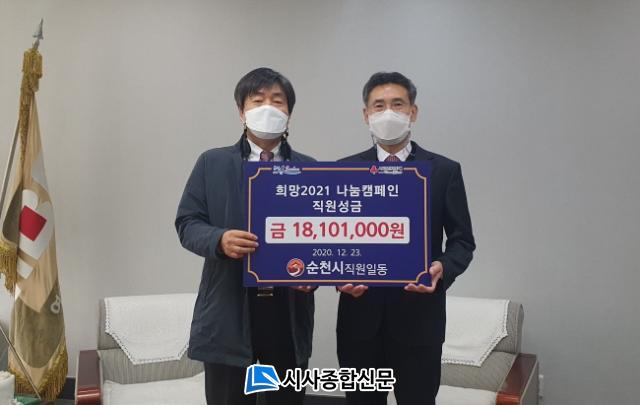ÀÓ俵 ¼øÃµ½Ã ºÎ½ÃÀåÀÌ Áö³ 23ÀÏ ¿©¼öMBC ¹æ¼Û»ç¸¦ ¹æ¹®ÇÏ¿© ¼º±ÝÀ» ±âŹÇßÀ¸¸ç, À̳¯ Àü´ÞµÈ ¼º±ÝÀº Áö³ 12¿ù 1ÀϺÎÅÍ 12¿ù 18ÀϱîÁö Çã¼® ¼øÃµ½ÃÀåÀ» ºñ·ÔÇÑ ¸ðµç °øÁ÷ÀÚµéÀÌ ½Ê½ÃÀÏ¹Ý ¸ð±ÝÇÑ °ÍÀ¸·Î Àü¶ó³²µµ »çȸº¹Áö°øµ¿¸ð±Ýȸ¸¦ ÅëÇØ ¾î·Á¿î ÀÌ¿ôÀ» À§ÇØ ¾²ÀÏ ¿¹Á¤ÀÌ´Ù.