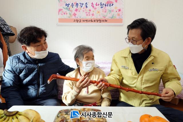 [½Ã»çÁ¾ÇսŹ® = ³²Àç¿Á ±âÀÚ] °íⱺ Áö¿ª»çȸº¸ÀåÇùÀÇü(°øµ¿À§¿øÀå À¯±â»ó, ±èÇö±â)°¡ 100¼¼ ¾î¸£½ÅÀÇ ¸¸¼ö¹«°À» ÃàÇÏÇϱâ À§ÇØ ¾î¸£½ÅµéÀ» ã¾ÆºË°í °¨»ç Àλ縦 ÀüÇÏ´Â ½Ã°£À» °¡Á³´Ù.