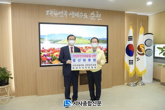 ¼øÃµ³²ºÎ±³È¸ ¹Úº´½Ä ¿ø·Î¸ñ»ç°¡ ¼øÃµ½Ã¿¡ µµ¿òÀ» ¿äÃ»ÇØ ¼øÃµ½Ã º¸°Ç¼Ò´Â ¸¸»èÀÇ Àӽźΰ¡ °Ç°ÇÏ°Ô Ãâ»êÇÒ ¼ö ÀÖµµ·Ï µ½±â À§ÇØ ÀӽźΠ¿µ¾çÁ¦, ¸¶½ºÅ© µîÀ» Àü´ÞÇÏ¿´°í, ´ö¿¬µ¿ ÇàÁ¤º¹Áö¼¾ÅÍ¿¡¼ ±ä±Þ»ý°èºñ¸¦ Áö¿øÇÏ¿´´Ù.