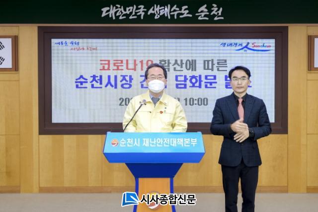 Çã¼® ¼øÃµ½ÃÀåÀº¡°»õÇØ º®µÎºÎÅÍ 13¸íÀÇ È®ÁøÀÚ°¡ ¹ß»ýÇØ 3Â÷ À§±â·Î Ä¡´ÝÁö ¾ÊÀ»±î ¿ì·ÁµÈ´Ù¸é¼, À̹ø ÇàÁ¤¸í·ÉÀÇ ½ÇÈ¿¼º È®º¸¸¦ À§ÇØ °øµ¿Ã¼ÀÇ ¾ÈÀüÀ» À§ÇùÇÏ´Â À§¹Ý»çÇ×Àº ¹«°ü¿ëÀ» ¿øÄ¢À¸·Î Çü»ç°í¹ß°ú ÇÔ²² °·ÂÇÑ ÇàÁ¤Á¶Ä¡¸¦ ÃëÇϰڴÙ.¡±°í ¹àÇû´Ù.