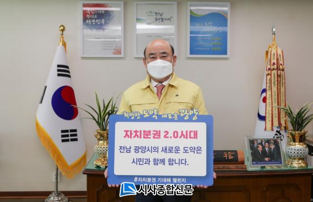 Á¤ ½ÃÀåÀº À̳¯ ½Ãû Áý¹«½Ç¿¡¼ ¡®±¤¾ç½ÃÀÇ »õ·Î¿î µµ¾àÀº ½Ã¹Î°ú ÇÔ²²ÇÕ´Ï´Ù¡¯¶ó´Â ÆÖ¸»À» µé¾î º¸À̸ç, °ÈµÈ ÀÚÄ¡ºÐ±Ç¿¡ ´ëÇÑ ½Ã¹ÎµéÀÇ °ü½É°ú Àû±ØÀûÀÎ Âü¿©¸¦ È£¼ÒÇß´Ù.