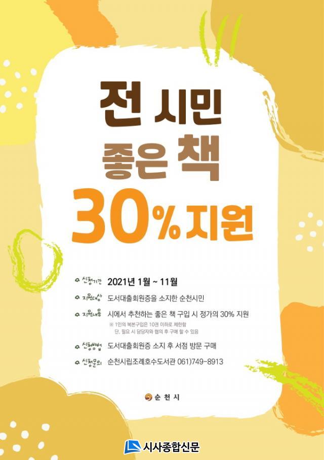 ¡®Àü ½Ã¹Î ÁÁÀº Ã¥ µµ¼ Áö¿ø»ç¾÷¡¯Àº µµ¼´ëÃâȸ¿øÁõÀ» ¼ÒÁöÇÑ ¼øÃµ½Ã¹ÎÀ» ´ë»óÀ¸·Î ¼øÃµ½Ã One City One Book, ½Ã¹Î Ãßõµµ¼, Àü¹®±â°ü Ãßõµµ¼ µî ¼øÃµ½Ã°¡ ¼±Á¤ÇÑ ÁÁÀº Ã¥ ±¸ÀԽà Á¤°¡ÀÇ 30%¸¦ Áö¿øÇÑ´Ù.