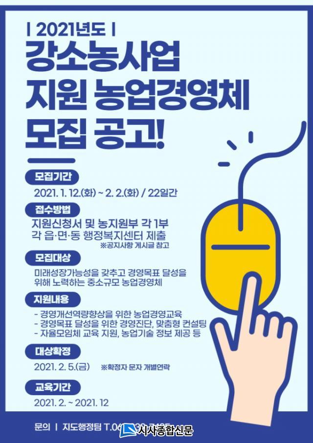 ³ªÁÖ½Ã(½ÃÀå °ÀαÔ)´Â 2021³âµµ °¼Ò³ó Áö¿ø»ç¾÷ ´ë»ó ³ó¾÷ °æ¿µÃ¼¸¦ ¿À´Â 2¿ù 2ÀϱîÁö ¸ðÁýÇÑ´Ù°í 12ÀÏ ¹àÇû´Ù. ¸ðÁý ´ë»óÀº °æ¿µ°³¼± ½ÇõÀÇÁö°¡ ÀÖ´Â °ü³» Áß¼Ò±Ô¸ð ³ó¾÷ÀÎ(³ó¾÷ °æ¿µÃ¼)ÀÌ´Ù.