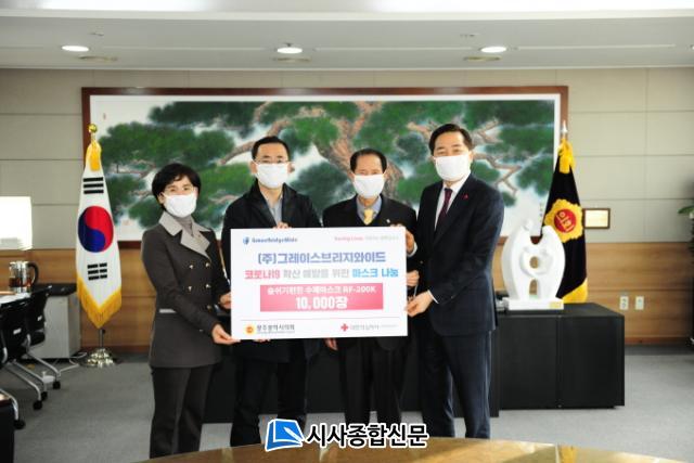 ÀÌ ³¯ ±âʽÄÀº ¢ß±×·¹À̽ººê¸®Áö¿ÍÀ̵尡 Äڷγª19 »çÅÂÀÇ Àå±âÈ·Î ¸¹Àº ¾î·Á¿òÀ» °Þ°í ÀÖ´Â ³ëÀΰú Àå¾ÖÀÎ, ÀÓ»êºÎ¿Í ¾Æµ¿ µîÀ» °¨¿°Áõ À§±â·ÎºÎÅÍ º¸È£Çϱâ À§ÇØ Àڻ翡¼ Á¦ÀÛÇÑ ¼û½¬±â°¡ Æí¾ÈÇϰí Âø¿ë°¨ÀÌ ¿ì¼öÇÑ °í±Þ¸¶½ºÅ© 1¸¸Àå(À°Ãµ¸¸¿ø »ó´ç)À» ´ëÇÑÀû½ÊÀڻ籤ÁÖÀü³²Áö»çȸ¿¡ ±âºÎÇϰíÀÚ ¸¶·ÃµÆ´Ù.