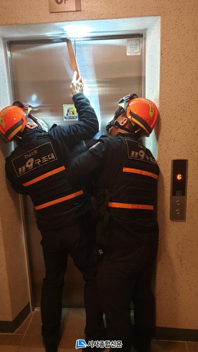 ÇÑÆí, À嵿¼± ±¸Á¶´ëÀåÀº ¡°¿¤¸®º£ÀÌÅͰ¡ ¸ØÃ߰ųª ¹®ÀÌ ¿¸®Áö ¾Ê¾Æ ³»ºÎ¿¡ °¤È÷´Â »ç°í°¡ °£È¤ »ý±â´Âµ¥ ³»ºÎ¿¡ °¤Èù ¿ä±¸Á¶ÀÚ´Â ¹«¸®ÇÏ°Ô ¹®À» °³¹æÇÏ·Á ÇØ¼´Â ¾È µÇ°í ¸ÕÀú ¿¤¸®º£ÀÌÅÍ ³»ºÎ¿¡ ÀÖ´Â ¡®ºñ»ó¡¯ ¹öưÀ» ´·¯ °ü°èÀÚ¿ÍÀÇ ´ëȸ¦ ½ÃµµÇϰųª ½Å¼ÓÈ÷ 119¿¡ ½Å°í ÈÄ ºÒÇÊ¿äÇÑ ¿òÁ÷ÀÓÀº ÃÖ¼ÒÈÇÑ »óÅ·Π±¸Á¶°¡ µÉ ¶§±îÁö Ä§ÂøÇÏ°Ô ±â´Ù·Á¾ß ÇÑ´Ù¡±°í ¸»Çß´Ù.