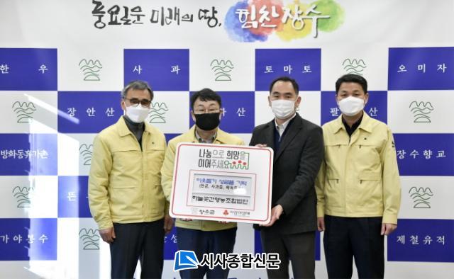 [½Ã»çÁ¾ÇսŹ® = ³²Àç¿Á ±âÀÚ] Çϴð÷°£¿µ³óÁ¶ÇÕ¹ýÀÎ(´ëÇ¥ À¯¿µ·Ï)Àº Áö³ 19ÀÏ Àå¼ö±ºÀ» ¹æ¹®ÇÏ¿© Áö¿ª ³» ¾î·Á¿î ÀÌ¿ôÀ» µ½´Âµ¥ ½á´Þ¶ó¸ç ¼º±Ý 70¸¸¿ø°ú »ç°úÁó 20¹Ú½º, ÇØµ¶ÁÖ½º 10¹Ú½º¸¦ Àå¼ö±º¿¡ ±âŹÇß´Ù.