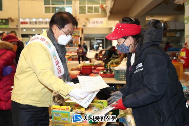 À̹ø Ä·ÆäÀÎÀº Áö³ 16ÀÏ °Áø¿¡ Äڷγª19 È®ÁøÀÚ°¡ ¹ß»ýÇÔ¿¡ µû¶ó Áö¿ª»çȸ È®»ê Â÷´Ü ¹æÁö¸¦ À§ÇØ ÀÌ·ïÁ³´Ù. À̽¿Á °Áø±º¼ö´Â °Áø 5ÀÏÀåÀ» ¸Â¾Æ ½ÃÀå ¹æ¹®°´°ú »óÀÎÀ» ´ë»óÀ¸·Î ½ÃÀå ÀÔ±¸ 8°÷¿¡¼ ¸¶½ºÅ©¿Í Äڷγª19 ¿¹¹æ È«º¸ Àü´ÜÀ» ¹èºÎÇß´Ù.