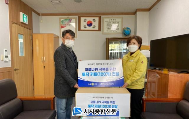 [½Ã»çÁ¾ÇսŹ® = ³²Àç¿Á ±âÀÚ] (Àç)°í⹮Ȱü±¤Àç´ÜÀÌ Áö³ 19ÀÏ °íⱺ º¸°Ç¼Ò¸¦ ¹æ¹®ÇØ ÀÇ·áÁøÀÇ ³ë°í¿¡ °¨»çÇÏ´Â ¸¶À½À» ´ãÀº ¡®Åä´ÚŰƮ¡¯ 100¼¼Æ®¸¦ Àü´ÞÇß´Ù.