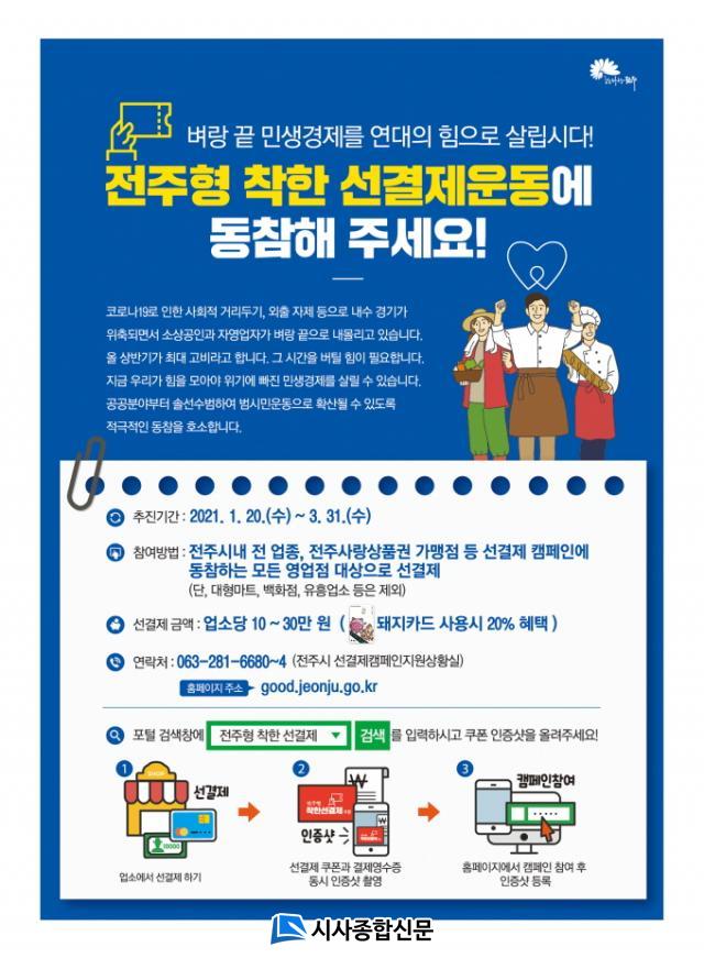 ÀüÁֽô ½Ã¹ÎµéÀÌ ¼±°áÁ¦ÇÑ ¾÷¼Ò°¡ Æó¾÷ÇÏ´Â °æ¿ì¿¡ ´ëºñÇØ ÇÇÇØ¸¦ º¸ÀüÇÒ ¼ö ÀÖ´Â ½Ã½ºÅÛµµ ¸¸µé¾ú´Ù. Ä·ÆäÀÎ ±â°£ µ¿¾È ¼±°áÁ¦¸¦ ÇÑ ¾÷¼Ò°¡ Æó¾÷À» ÇØ 5¿ù±îÁö ³ª¸ÓÁö µ·À» »ç¿ëÇÏÁö ¸øÇß´Ù¸é º¸»ó±ÝÀÌ Áö±ÞµÈ´Ù. º¸»ó±ÝÀ» ¹Þ±â À§Çؼ´Â ÀüÁֽà ȨÆäÀÌÁö(www.jeonju.go.kr)¿¡ ÀÎÁõÀ» ÇØ¾ß ÇÑ´Ù.