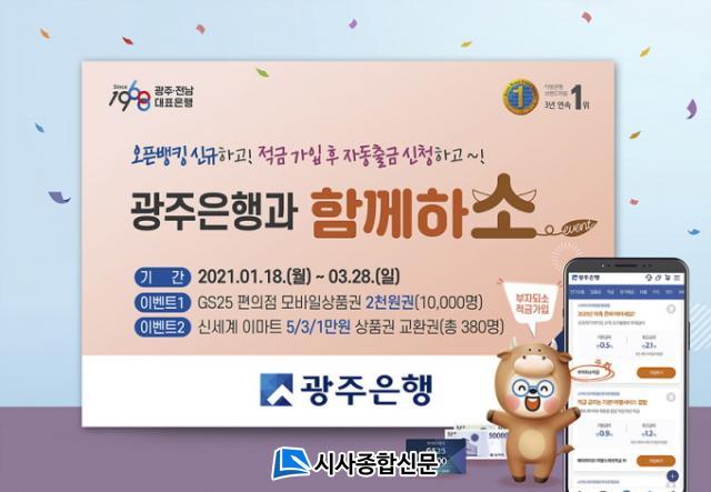 ¡ã¡®¿ÀÇÂÇϼҡ¯ À̺¥Æ®´Â ±¤ÁÖÀºÇà ¿ÀǹðÅ· ¼ºñ½º ½Å±Ô °¡ÀÔ ÈÄ ´Ù¸¥ ±ÝÀ¶±â°ü °èÁ¿¡¼ ±¤ÁÖÀºÇà º»ÀÎ °èÁ·Π1¸¸¿ø ÀÌ»ó ÀÌüÇÑ °í°´À» ´ë»óÀ¸·Î Çϸç, ¼±Âø¼ø 10,000¸í¿¡°Ô GS25ÆíÀÇÁ¡ ¸ð¹ÙÀÏ»óǰ±Ç 2õ¿ø±ÇÀ» Á¦°øÇÑ´Ù.