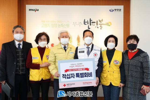 À̳¯ ±ºÃ» ´ëȸÀǽǿ¡¼ ÁøÇàµÈ 2021³âµµ Àû½ÊÀÚ Æ¯º°È¸ºñ Àü´Þ½ÄÀº Àû½ÊÀÚ Æ¯º°È¸ºñ(Èñ¸Á ³ª´® ¼º±Ý 2020. 12. 1. ~ 2022. 1. 31.) ¸ð±Ý¿îµ¿¿¡ µ¿ÂüÇϱâ À§ÇØ ÁøÇàµÈ °ÍÀ¸·Î, ´ëÇÑÀû½ÊÀÚ»ç ÀüºÏÁö»ç À̼±È« ȸÀå°ú ¹«ÁÖÁö±¸ÇùÀÇȸ ¹Ú¼øÀÓ È¸Àå µîÀÌ ÇÔ²²Çß´Ù.