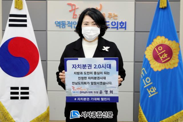 [½Ã»çÁ¾ÇսŹ® = ¿À½ÂÅà ±âÀÚ] Àü³²µµÀÇȸ À±¸íÈñ ÀÇ¿ø(´õºÒ¾î¹ÎÁִ硤ºñ·Ê)Àº 22ÀÏ ´ëÅë·É¼Ò¼Ó ÀÚÄ¡ºÐ±ÇÀ§¿øÈ¸°¡ ÀÚÄ¡ºÐ±Ç 2.0½Ã´ë °³¸·À» ÀÀ¿øÇϱâ À§ÇØ ½ÃÀÛÇÑ ¡®ÀÚÄ¡ºÐ±Ç ±â´ëÇØ¡¯Ã§¸°Áö¿¡ µ¿ÂüÇß´Ù.