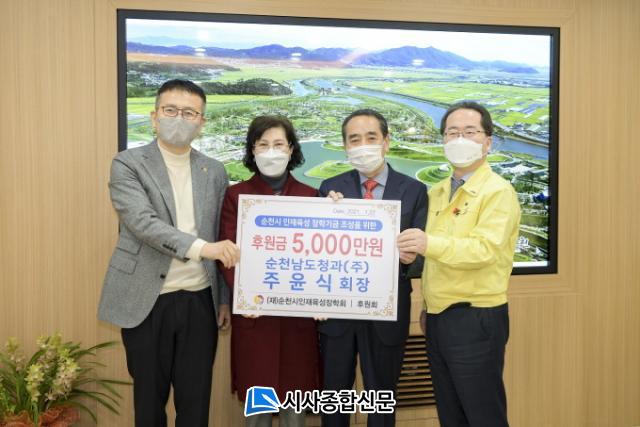 [½Ã»çÁ¾ÇսŹ® = Àå¹Î±Ô ±âÀÚ] Àç´Ü¹ýÀÎ ¼øÃµ½ÃÀÎÀçÀ°¼ºÀåÇÐȸ(ÀÌ»çÀå Çã¼®)´Â 22ÀÏ ¼øÃµ½Ãû¿¡¼ ÀÎÀçÀ°¼º ÀåÇбâ±Ý Àü´Þ½ÄÀ» °®°í ÁÖÀ±½Ä îñ¼øÃµ½ÃÀÇȸ ÀÇ¿øÀ¸·ÎºÎÅÍ ÀåÇбâ±Ý 5õ¸¸¿øÀ» ±âŹ¹Þ¾Ò´Ù.