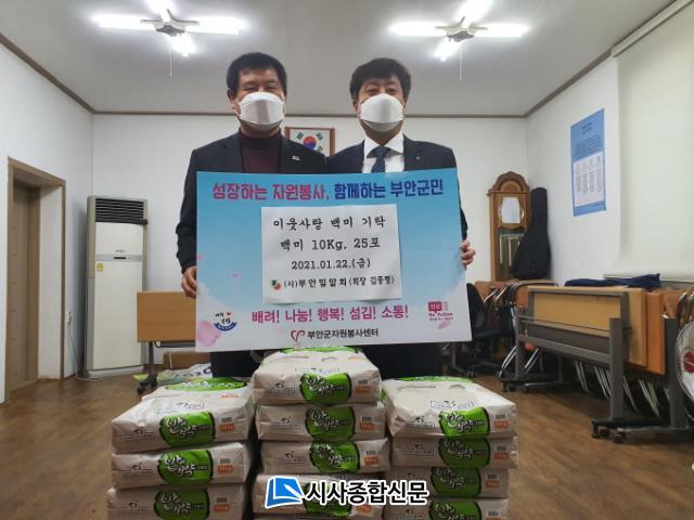 [½Ã»çÁ¾ÇսŹ® = ³²Àç¿Á ±âÀÚ] (»ç)ºÎ¾È¹Ð¾Ëȸ(ȸÀå ±èÁ¾·É)¿¡¼´Â 22ÀÏ(±Ý)¿¡ Äڷγª19 Àå±âÈ·Î ÀÎÇØ ¾î·Á¿òÀ» °Þ°í ÀÖ´Â ÀÌ¿ôÀ» À§ÇØ ¹é¹Ì 10kg, 25Æ÷¸¦ ºÎ¾È±ºÀÚ¿øºÀ»ç¼¾ÅÍ(¼¾ÅÍÀå ±è¿µ¹è)¿¡ ±âŹ Çß´Ù.