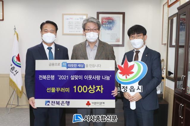 [½Ã»çÁ¾ÇսŹ® = ³²Àç¿Á ±âÀÚ] ÀüºÏÀºÇà(ÀºÇàÀå ÀÓ¿ëÅÃ)Àº 26ÀÏ Á¤À¾½ÃûÀ» ¹æ¹®ÇØ ¼³ ¸íÀý ¸ÂÀÌ ÀÌ¿ô»ç¶û ¼±¹°²Ù·¯¹Ì 100»óÀÚ(ÃÑ 250¸¸¿ø)¸¦ Àü´ÞÇß´Ù.