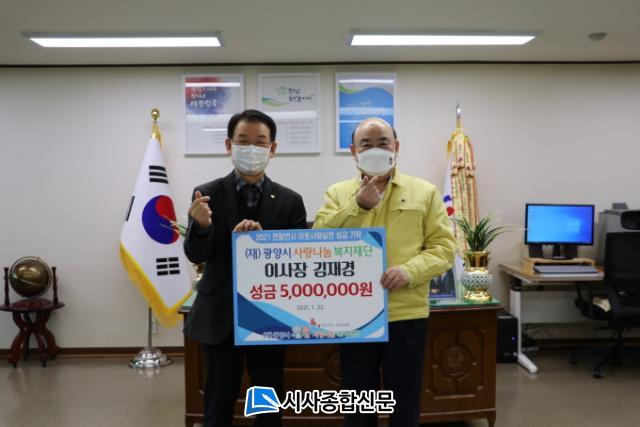 [½Ã»çÁ¾ÇսŹ® = Àå¹Î±Ô ±âÀÚ] ±¤¾ç½Ã´Â Áö³ 22ÀÏ ±èÀç°æ (Àç)±¤¾ç½Ã»ç¶û³ª´®º¹ÁöÀç´Ü ÀÌ»çÀåÀÌ Áö¿ª ³» ¾î·Á¿î ÀÌ¿ôÀ» À§ÇØ ¼º±Ý 500¸¸ ¿øÀ» »ç¶û³ª´®º¹ÁöÀç´Ü¿¡ ÁöÁ¤±âŹÇß´Ù°í ¹àÇû´Ù.