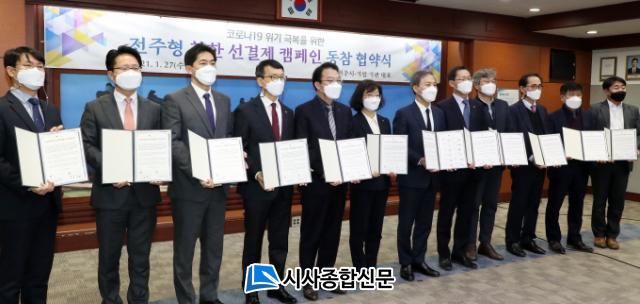 ÀüÁֽô 27ÀÏ ±è½Â¼ö ÀüÁÖ½ÃÀå°ú ±è¼ºÈ£ÀÏ ±¹¹Î¿¬±Ý°ø´Ü °æ¿µÁö¿ø½ÇÀå, ±è»óźÀ Çѱ¹±¹ÅäÁ¤º¸°ø»ç °æ¿µÁö¿øº»ºÎÀå, °í¼º¿í ÈÞºñ½º ÀüÁÖ°øÀåÀå, ºÎÁ¤ÇÊ ÀüÁÖÆäÀÌÆÛ ÀλçÃѹ«ÆÀÀå, ÀÓµ¿¿í À¯´Ï¿Â½ÃƼ ´ëÇ¥ÀÌ»ç, È«¼ºÈ¯ ºñ³ªÅØ »ó¹«ÀÌ»ç, ÀÓµ¿½Ä ÇÏÀÌÆ®Áø·Î ÀüÁÖÁöÁ¡Àå, ¼Çѱ¹ ÀüºÏÀºÇà ¼ö¼®ºÎÇàÀå, ÀÌÁø»ê ³óÇù ÀüºÏÁö¿ªº»ºÎ ºÎº»ºÎÀå, Á¤°æÃ¶ ºÏÀüÁÖ¼¼¹«¼Àå, À念ö ÀüÁÖ¼¼¹«¼ ü³³Â¡¼¼°úÀå µîÀÌ Âü¼®ÇÑ °¡¿îµ¥ ¡®ÀüÁÖÇü ÂøÇÑ ¼±°áÁ¦ Ä·ÆäÀΡ¯ µ¿Âü Çù¾à½ÄÀ» °¡Á³´Ù.