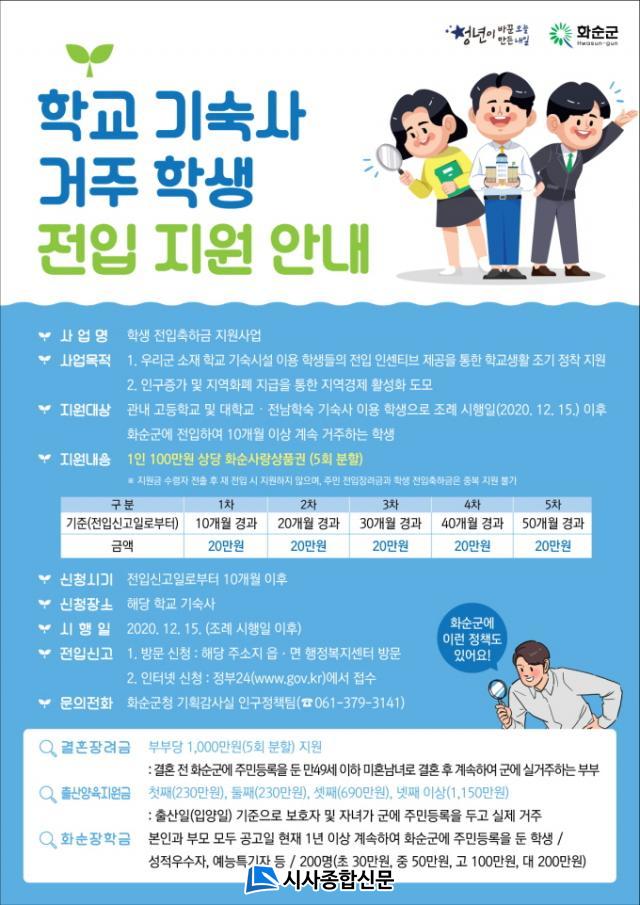 °³Á¤ Á¶·Ê ½ÃÇà¿¡ µû¶ó ¿ÃÇØºÎÅÍ Ã³À½À¸·Î ÀüÀÔ Àå·Á±Ý°ú Çлý ÀüÀÔ ÃàÇϱÝÀ» Áö±ÞÇÑ´Ù. ÀüÀÔ Àå·Á±ÝÀº ÀÏ¹Ý ÁÖ¹ÎÀÌ ´ë»óÀ̰í, Çлý ÀüÀÔ ÃàÇϱÝÀº ȼø Áö¿ª ±â¼÷ ½Ã¼³À» ÀÌ¿ëÇÏ´Â ÇлýÀÌ ´ë»óÀÌ´Ù. ȼøÀ¸·Î ÀüÀÔÇÑ ÈÄ ÀÏÁ¤ ±â°£ °ÅÁÖÇϸé Áö±ÞµÈ´Ù.