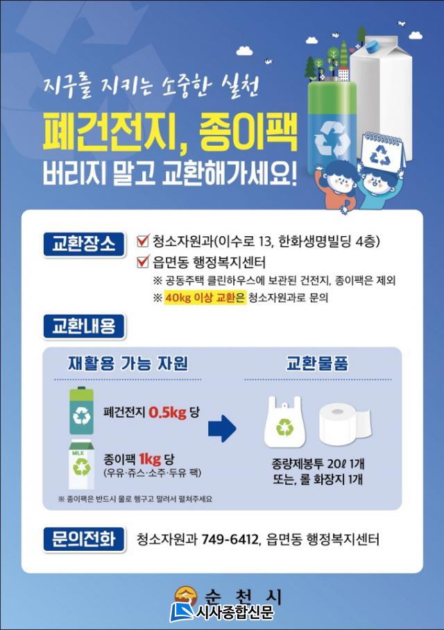¼øÃµ½Ã´Â Á¾ÀÌÆÑ¡¤Æó°ÇÀüÁö ±³È¯Àå¼Ò¸¦ 24°³ À¾¸éµ¿ ÇàÁ¤º¹Áö¼¾ÅÍ·Î È®´ëÇÏ¿© ½Ã¹Î Á¢±Ù¼º, Æí¸®¼ºÀ» Çâ»ó½ÃÄÑ ÀÚ¿øÈ¸¼ö¿¡ ´ëÇÑ ½Ã¹ÎÀǽÄÀ» ³ôÀδٴ °èȹÀÌ´Ù.
