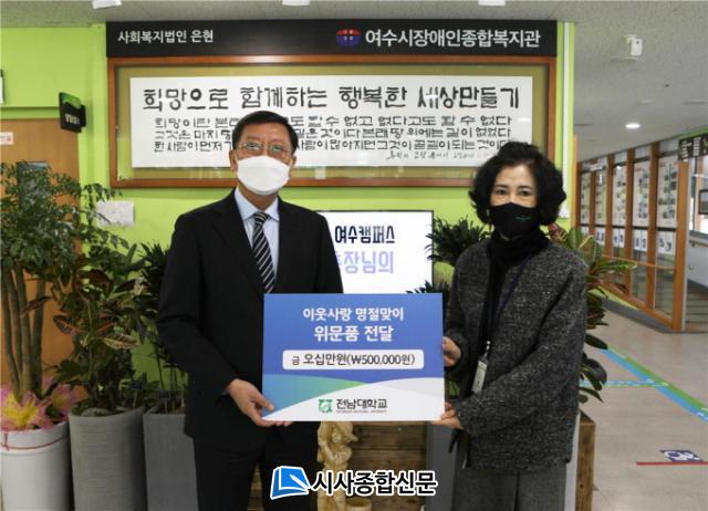 ¿©¼öÄ·ÆÛ½ºµµ ±³Á÷¿ø°ú °ø¹«¿ø³ëÁ¶°¡ ¸ðÀº À§¹®±Ý°ú »ýȰÇʼöǰÀ» ¿©¼ö½ÃÀå¾ÖÀÎÁ¾ÇÕº¹Áö°ü(¿©¼ö½Ã ¸¸¼º·Î) µî »çȸº¹Áö½Ã¼³¿¡ Àü´ÞÇß´Ù.