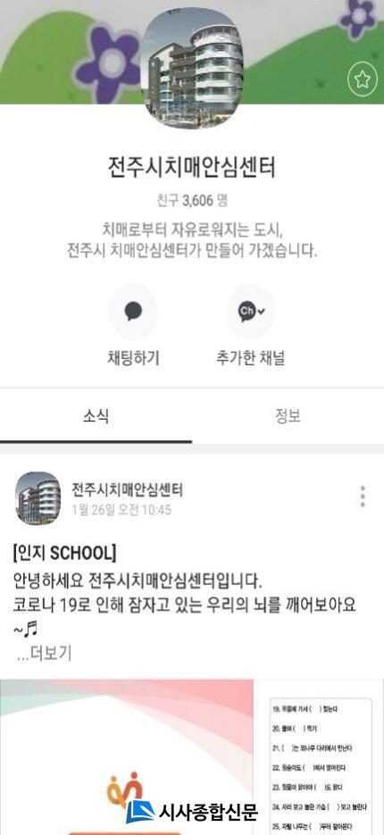 ÀüÁֽú¸°Ç¼Ò(¼ÒÀå ±è½Å¼±)´Â Ä¡¸Å Á¶±â ¹ß°ß°ú ¿¹¹æ¿¡ µµ¿òÀÌ µÇ´Â Á¤º¸¸¦ ½Ã¹Îµé¿¡°Ô Á¦°øÇϱâ À§ÇØ ÀüÁֽà ġ¸Å¾È½É¼¾ÅÍ Ä«Ä«¿ÀÅå ä³ÎÀ» ¿î¿µÇϰí ÀÖ´Ù°í 12ÀÏ ¹àÇû´Ù.