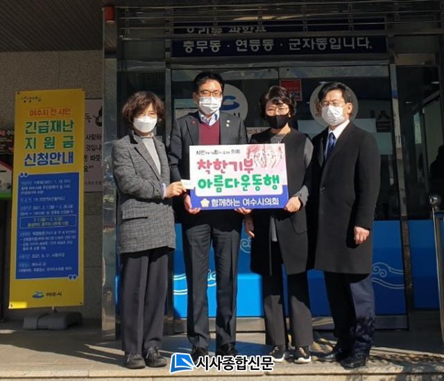 [½Ã»çÁ¾ÇսŹ® = ¿À½ÂÅà ±âÀÚ] ¿©¼ö½Ã´Â Ãæ¹«µ¿ÀÌ Áö¿ª±¸ÀÎ ¿©¼ö½ÃÀÇȸ ¼Ò¼Ó ±è¿µ±Ô, ÀÌ»ó¿ì, ¼ÛÀçÇâ, °ÇöÅ ÀÇ¿øÀÌ Äڷγª19·Î Èûµç ³ª³¯À» º¸³»°í ÀÖ´Â Ãæ¹«µ¿ ¼Ò»ó°øÀΰú Ãë¾à°èÃþÀ» À§ÇØ ±ä±ÞÀç³Áö¿ø±ÝÀ» ±âŹÇß´Ù.