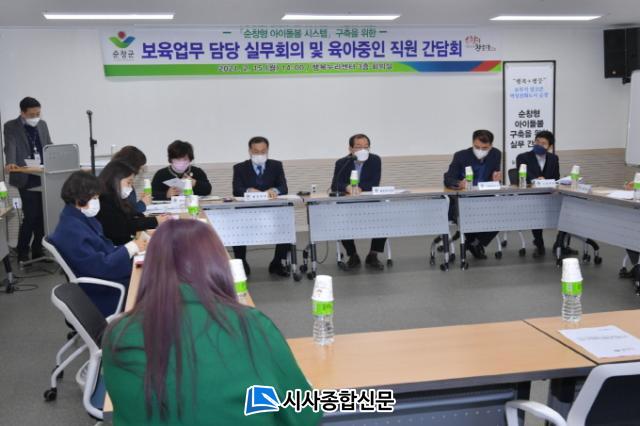 À̳¯ ¼øÃ¢±º ¼Ò¼Ó °ø¹«¿ø Áß À°¾ÆÁßÀÎ Á÷¿ø°ú º¸À°¾÷¹« ½Ç¹« Á÷¿ø µî 30¿©¸íÀÌ Âü¼®ÇØ À°¾Æ Áß ´À³¤ ¾Ö·Î»çÇ×À̳ª ¼øÃ¢±º¿¡¼ °èȹ ÁßÀÎ »õ·Î¿î µ¹º½Á¤Ã¥¿¡ ´ëÇØ ´Ù¾çÇÑ ÀǰßÀ» Á¦½ÃÇß´Ù.