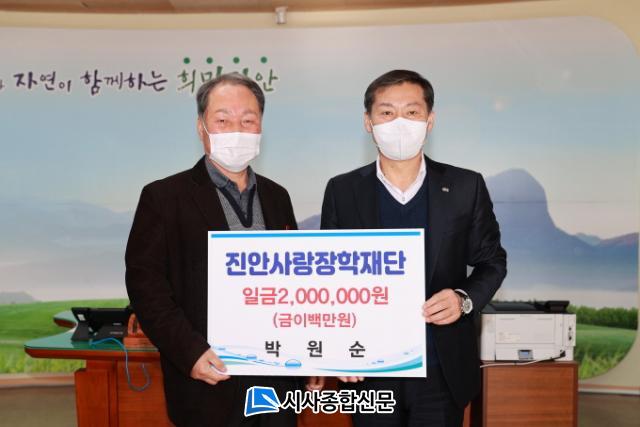 ÀÌ ³¯ ¹Ú¿ø¼ø¾¾´Â ÀåÇбÝÀ» ±âŹÇÏ¸ç ¡°Å« ±Ý¾×Àº ¾Æ´ÏÁö¸¸ ¿ì¸® Áö¿ªÀÇ ¹Ì·¡¸¦ À̲ø¾î ³ª°¥ ÈǸ¢ÇÑ ÀÎÀ縦 Ű¿ì´Â ÀÏ¿¡ º¸ÅÆÀÌ µÇ°íÀÚ Áø¾È»ç¶û ÀåÇÐÀç´ÜÀ» ÅëÇØ Áö¿ª»çȸ¿¡ ȯ¿øÇÏ´Â ¸¶À½À¸·Î ±âºÎÇÏ°Ô µÇ¾ú´Ù.¡±°í ¶æÀ» ¹àÈ÷¸ç ¡°¾ÕÀ¸·Îµµ ¿ì¸® Áö¿ªÀÇ ÀÎÀç¾ç¼º°ú Áö¿ª¹ßÀü¿¡ Áö¼ÓÀûÀÎ °ü½ÉÀ» °®°í µ¿ÂüÇϰڴÙ.¡±°í ¸»Çß´Ù.