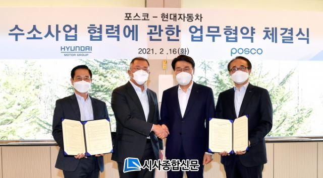 Æ÷½ºÄÚ±×·ì°ú Çö´ëÂ÷±×·ìÀº 16ÀÏ Æ÷Ç× Æ÷½ºÄÚ Ã»¼Û´ë¿¡¼ ÃÖÁ¤¿ì Æ÷½ºÄÚ±×·ì ȸÀå, ±èÇе¿ Æ÷½ºÄÚ Ã¶°ºÎ¹®Àå, À¯º´¿Á Æ÷½ºÄÚ »ê¾÷°¡½º¼ö¼Ò»ç¾÷ºÎÀå°ú Á¤ÀǼ± Çö´ëÂ÷±×·ì ȸÀå, °ø¿µ¿î Çö´ëÀÚµ¿Â÷ Àü·«±âȹ´ã´ç »çÀå, ¹ÚÁ¾¼º Çö´ëÁ¦Ã¶ ºÎ»çÀå µîÀÌ Âü¼®ÇÑ °¡¿îµ¥ ¡®¼ö¼Ò »ç¾÷ Çù·Â¿¡ °üÇÑ ¾÷¹«Çù¾à¡¯À» ü°áÇß´Ù.