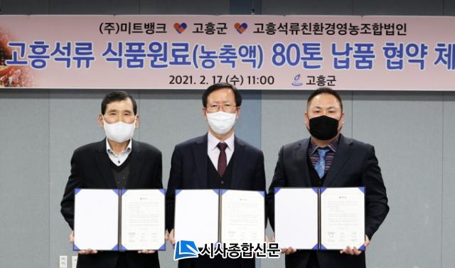 °íÈﱺÀº 17ÀÏ ±ºÃ» ÆÈ¿µ»êȦ¿¡¼ ¼Û±Í±Ù ±º¼ö, ±è¿µÁØ, ¼Õ¿ëÇØ ´ëÇ¥ µî °ü°èÀÚ 20¿© ¸íÀÌ Âü¼®ÇÑ °¡¿îµ¥ °íÈï¼®·ù ½Äǰ¿ø·á 80Åæ ³³Ç° Çù¾àÀ» ü°áÇß´Ù°í ¹àÇû´Ù.