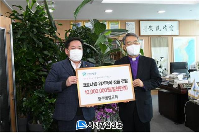 17ÀÏ ³²±¸¿¡ µû¸£¸é ±¤ÁÖ º¦¿¤±³È¸ ¸®Á¾ºó À§ÀÓ¸ñ»ç µî ±³È¸ °ü°èÀÚµéÀº À̳¯ ¿ÀÈÄ ³²±¸Ã»À» ¹æ¹®ÇØ ±èº´³» ±¸Ã»Àå¿¡°Ô Çö±Ý 1,000¸¸¿øÀ» ÁöÁ¤ ±âŹÇß´Ù.