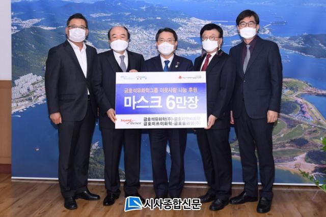 ¿©¼ö½Ã¿¡ µû¸£¸é Áö³ 19ÀÏ ±ÝÈ£¼®À¯ÈÇÐ(ÁÖ) ¼Û¼®±Ù ºÎ»çÀåÀ» ºñ·ÔÇØ ±ÝÈ£ÇǾغñÈÇÐ Á¤¿µÈ£ Àü¹«, ±ÝÈ£¹Ì¾²ÀÌÈÇÐ ¼Õ¿µ¿ø ºÎ»çÀå, ±ÝÈ£Æú¸®ÄÍ(ÁÖ) ÃÖ¿µ¼± °øÀåÀåÀÌ ¿©¼ö½Ãû ½ÃÀå½ÇÀ» ã¾Æ ±Ç¿ÀºÀ ¿©¼ö½ÃÀå¿¡°Ô Äڷγª19 ±Øº¹À» À§ÇÑ KF94 ¸¶½ºÅ© 6¸¸ÀåÀ» ÈÄ¿øÇÏ´Â Àü´Þ½ÄÀ» °¡Á³´Ù.