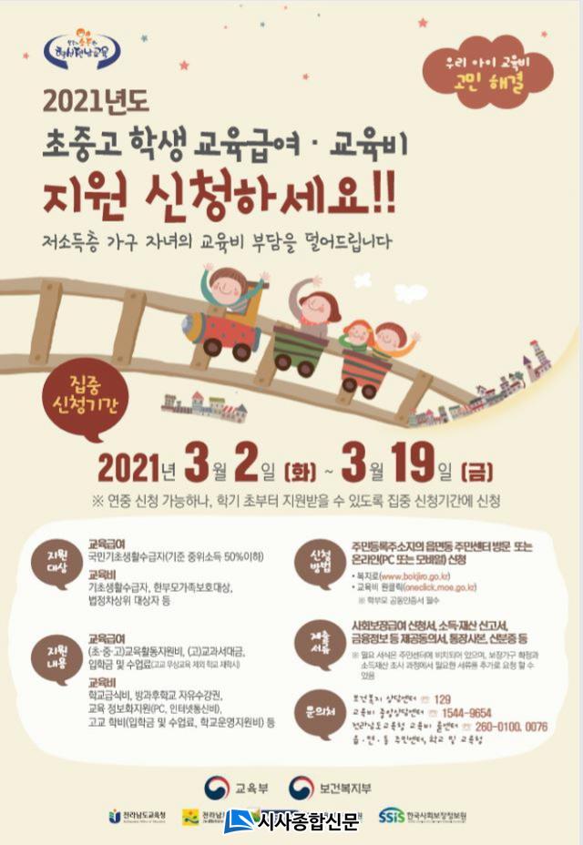 Àú¼ÒµæÃþ °¡±¸ ÀÚ³àÀÇ ±³À°ºñ ºÎ´ã °æ°¨À» À§ÇØ Áö¿øÇÏ´Â Çлý ±³À°±Þ¿© ¹× ±³À°ºñ´Â ¸Å³â 3¿ù »õ Çб⿡ ½ÅûÀ» ¹Þ¾Æ Áö±ÞÇÑ´Ù. ƯÈ÷, ¿ÃÇØ(2021Çг⵵)´Â ºÎ±³Àçºñ¿Í Çпëǰºñ¸¦ ±³À°È°µ¿Áö¿øºñ·Î ÅëÇÕ Áö¿øÇϸç, Áö¿ø ±Ý¾×À» ´ëÆø ÀλóÇØ ±³À°±Þ¿© º¸Àå ¼öÁØÀ» °ÈÇß´Ù.