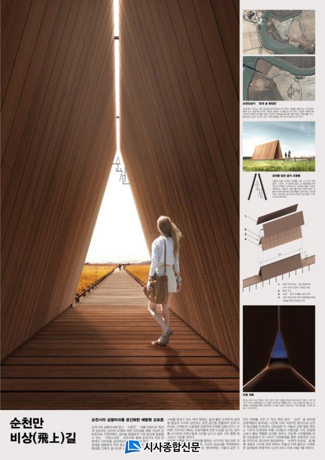 ÃÖ¿ì¼ö»óÀ¸·Î ¼±Á¤µÈ ¡®¼øÃµ¸¸ ºñ»ó(Þ«ß¾)±æ¡¯Àº ¼øÃµ½ÃÀÇ ºê·£µå ½½·Î°Ç ¡®ìÑ(in) suncheon¡¯ÀÇ ¡®»ç¶÷ ÀÎ(ìÑ)¡¯ÀÚ¸¦ ¹ÙÅÁÀ¸·Î ÈûÂ÷°Ô »ó½ÂÇÏ´Â ¼øÃµÀÇ ¹Ì·¡¿¡ ´ëÇÑ »ó¡¼ºÀ» üÇè °¡´ÉÇÑ Æ÷ÅäÁ¸À¸·Î ±¸ÇöÇÏ¿´´Ù.