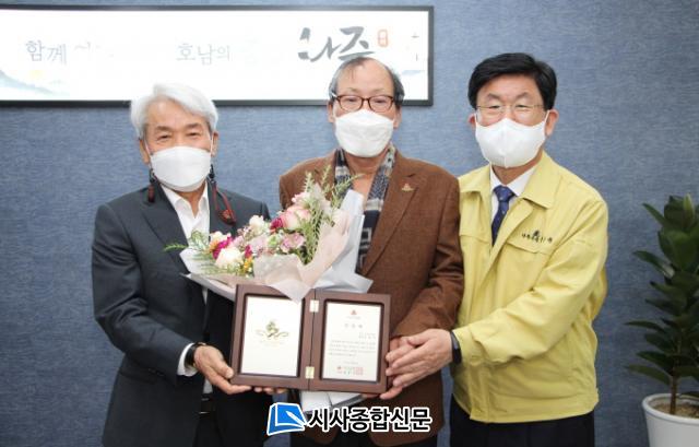 °ÀÎ±Ô ³ªÁÖ½ÃÀåÀº Áö³ 9ÀÏ Áý¹«½Ç¿¡¼ ³ëµ¿ÀÏ Àü³²»çȸº¹Áö°øµ¿¸ð±ÝȸÀå°ú ÇÔ²² À± ¾¾ÀÇ Àü³² ¾Æ³Ê¼Ò»çÀÌ¾îÆ¼ ȸ¿ø °¡ÀÔ½ÄÀ» °®°í Áö¿ª»çȸ ¼±ÇÑ ¿µÇâ·ÂÀ» ÀüÆÄÇÑ ±âºÎÀÚ¿¡ ´ëÇÑ Á¸°æ°ú °í¸¶¿òÀ» Ç¥Çß´Ù.