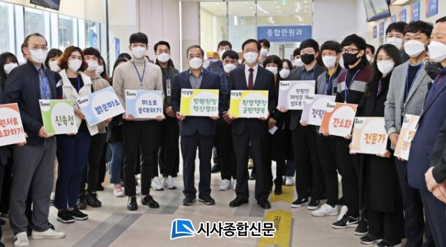 À̳¯ Çà»ç´Â »õ º½À» ¸Â¾Æ ¹Î¿ø½ÇÀÇ ºÐÀ§±â ¼â½Å ¹× Á÷¿ø ¸¶Àεå ÇÔ¾çÀ» À§ÇØ Ä£Àý Çõ½Å °áÀǹ® ³¶µ¶, Ä£Àý 5S ½Çõ ±¸È£ Á¦Ã¢ ¼øÀ¸·Î ÁøÇàµÇ¾úÀ¸¸ç 5S ±¸È£°¡ ÀûÈù ÇÇÄÏÀ» Ȱ¿ëÇØ Ä£Àý ½Çõ ´ÙÁü ¸Þ½ÃÁö¸¦ Àü´ÞÇß´Ù.