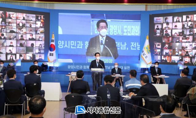 Äڷγª19·Î ÃÖ¼ÒÇÑÀÇ Àοø¸¸ Çà»çÀå¿¡ Âü¼®Çϰí, ÁֹΠ180¸íÀÌ ºñ´ë¸é ¿µ»óÀ» ÅëÇØ Âü¿©ÇÑ À̳¯ ±¤¾ç½Ã µµ¹Î°úÀÇ ´ëÈ´Â ±è±âÈ« Àü³²µµ Á¤Ã¥±âȹ°üÀÇ µµÁ¤º¸°í, ±è°æÈ£ ±¤¾ç½Ã ºÎ½ÃÀåÀÇ ±¤¾ç½Ã Çö¾Èº¸°í, ±è Áö»ç¿Í ÇöÀ塤¿µ»ó Âü¿©ÀÚ °£ ´ëÈ ¼øÀ¸·Î ÁøÇàµÆ´Ù.