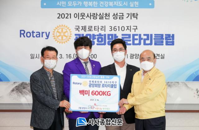 À̳¯ Àü´ÞµÈ ¹é¹Ì´Â ±¤¾çÈñ¸Á·ÎŸ¸®Å¬·´ÀÌ Áö³ 6ÀÏ Ã¢¸³ÇÏ¸é¼ ÃàÇÏ Èȯ ´ë½Å ¹ÞÀº °ÍÀ¸·Î, Áö¿ª ³» Ãë¾à°èÃþ°ú »çȸº¹Áö½Ã¼³¿¡ Àü´ÞÇØ ´Þ¶ó¸ç »ç¶û³ª´®º¹ÁöÀç´Ü¿¡ ±âŹÇß´Ù.