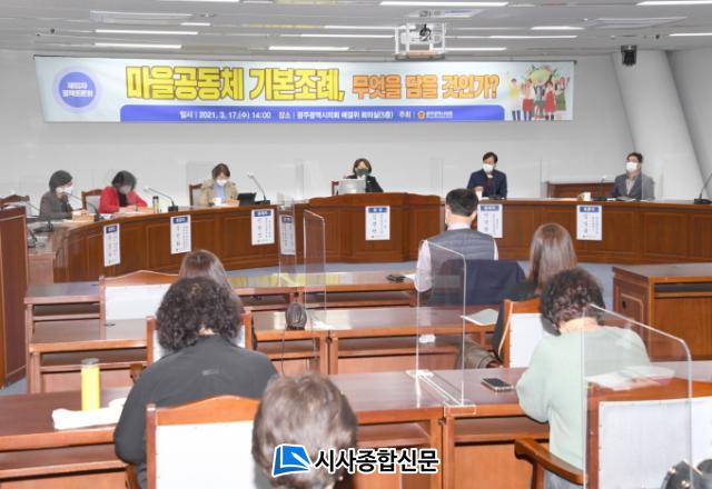 ÀÌ¾î ¡®¸¶À»°øµ¿Ã¼ ±âº»Á¶·Ê Á¦Á¤ÀÇ Çʿ伺¡¯À» ÁÖÁ¦·Î ¹ßÁ¦ÇÑ ¹ÎÇöÁ¤ ¿¬±¸¿øÀº Á¦µµ¸¶·Ã ÁÖ¿ä³»¿ë°ú ÀïÁ¡À» ¼³¸íÇÏ¸ç ¡°¸¶À»°øµ¿Ã¼ Á¦µµ¸¶·ÃÀÌ ±¤ÁÖÁö¿ª Çö¾ÈÀ» ¹Ý¿µÇØ¾ß ÇÑ´Ù¡±°í °Á¶Çß´Ù.