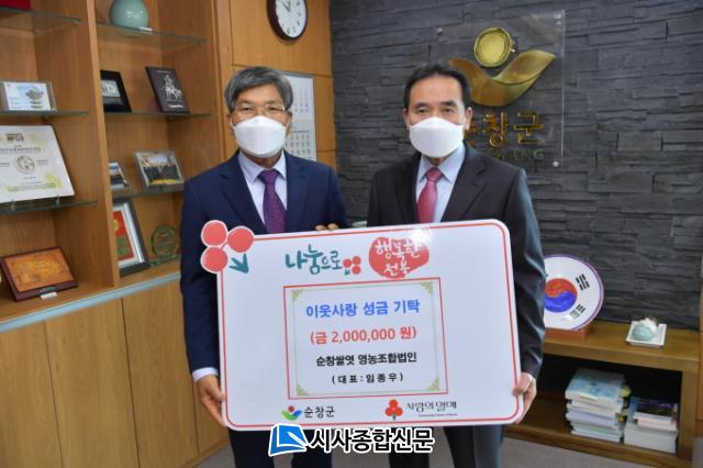 [½Ã»çÁ¾ÇսŹ® = ³²Àç¿Á ±âÀÚ] ¼øÃ¢½Ò¿³¿µ³óÁ¶ÇÕ¹ýÀÎ(´ëÇ¥ ÀÓÁ¾¿ì)ÀÌ Áö³ 19ÀÏ ¼øÃ¢±ºÃ»À» ¹æ¹®ÇØ Áö¿ªÀÇ ¾î·Á¿î ÀÌ¿ôÀ» À§ÇØ ½á´Þ¶ó¸ç 200¸¸¿øÀ» ±âŹÇß´Ù.