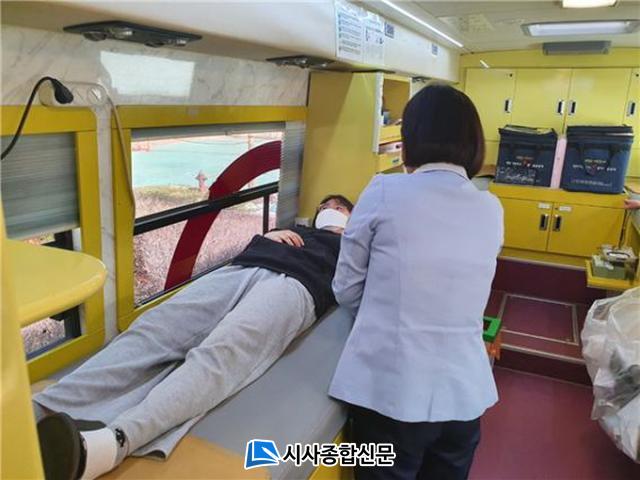 ÇåÇ÷¿¡ Âü¿©ÇÏ´Â ÀÔ»ç»ý°ú Á÷¿øÀº Äڷγª19 °¨¿° ¿¹¹æÀ» À§ÇØ ÇåÇ÷ ´ë»óÀÚ ½Ã°£´ëº° ¹èÁ¤, »çÀü ¹®ÁøÇ¥ ÀÛ¼º, ¸¶½ºÅ© Âø¿ë ¹× ¼Õ ¼Òµ¶, ÇåÇ÷ Àü ü¿Â ÃøÁ¤ µî ¹æ¿ª ¼öÄ¢À» öÀúÈ÷ ÁؼöÇÏ¸ç ¾ÈÀüÇÏ°Ô ÁøÇàµÇ¾úÀ¸¸ç ÀÔ»ç»ý°ú Á÷¿ø µî ÃÑ 25¸íÀÌ Âü¿©Çß´Ù.