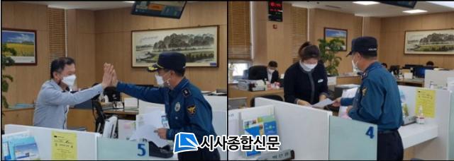 ¡®Morning Nine¡¯ Ȱµ¿Àº Áö±¸´ë¡¤ÆÄÃâ¼Ò Áö¿ª¾ÈÀü°æÂû°üÀÌ ±ÝÀ¶±â°ü °³Àå 5ºÐ Àü ¹æ¹®ÇÏ¿© ±ÝÀ¶±â°ü Á¾»çÀÚ¸¦ ´ë»ó, ½É¸®ÀûÀ¸·Î ºÒ¾ÈÇØ º¸ÀÌ´Â °í°´ÀÌ °í¾×À» ÀÎÃâ ÇÏ´Â µî ÀǽɵǴ ÇൿÀ» º¸À̸é Áï½Ã ½Å°íÇϵµ·Ï ¼³¹®Áö¸¦ Ȱ¿ë È«º¸ÇÏ°í ±ÝÀ¶±â°ü Á¾»çÀڵ鿡°Ô´Â »ç¸í°¨À» ºÎ¿©¡¸±ÝÀ¶»ç±â ÇÇÇØ´Â ÀºÇà ⱸ¿¡¼ºÎÅÍ ¸·´Â´Ù.¡¹¶ó´Â ÀνÄÀ» ½É¾îÁÖ°í ÀÖ´Ù.