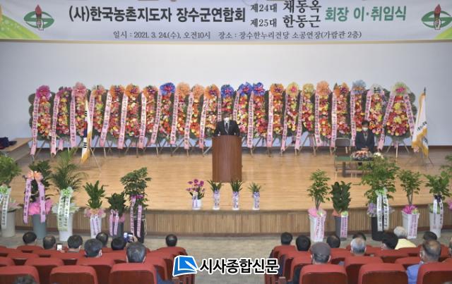 ÀÌ?ÃëÀӽĿ¡¼´Â 3³â µ¿¾È ¾î·Á¿î ³ó¾÷?³óÃÌ ¿©°Ç ¼Ó¿¡¼µµ ³óÃÌÁöµµÀÚ Àå¼ö±º¿¬ÇÕȸ ¼öÀåÀ¸·Î¼ÀÇ ³ó¾÷ÀεéÀÇ ±ÇÀÍÁõÁøÀ» À§ÇÑ È°µ¿°ú ³óÃÌÁöµµÀÚȸÀÇ À§»óÀ» ³ôÀÎ Á¦24´ë 䵿¿Á ȸÀåÀÇ ³ë°í¸¦ Ä¡ÇÏÇß´Ù.