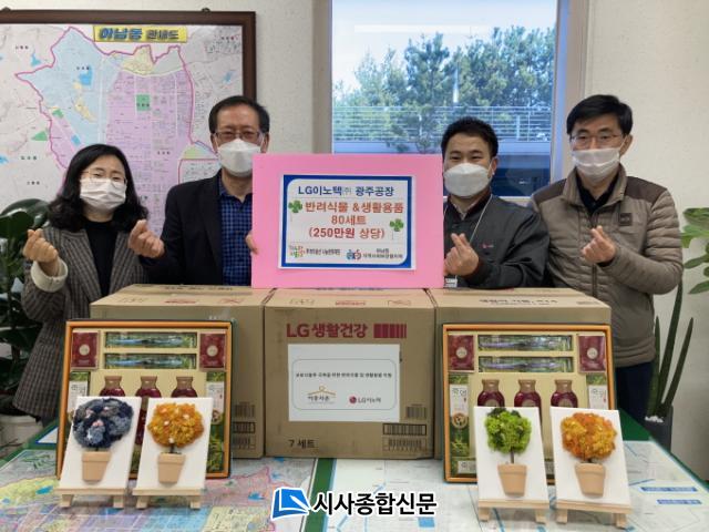 [½Ã»çÁ¾ÇսŹ® = ¿À½ÂÅà ±âÀÚ] LGÀ̳ëÅØ(´ëÇ¥ Á¤Ã¶µ¿) ±¤ÁÖ°øÀåÀÌ 26ÀÏ ¾î¸£½ÅµéÀ» À§ÇÑ ¹Ý·Á½Ä¹° ¹× »ýȰ¿ëǰ 80¼¼Æ®(250¸¸¿ø »ó´ç)¸¦ Çϳ²µ¿ÇàÁ¤º¹Áö¼¾ÅÍ¿¡ Àü´ÞÇß´Ù.