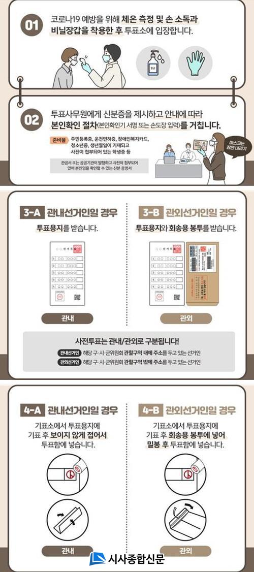 Àü³²¼±°üÀ§´Â À¯±ÇÀÚ°¡ ¾È½ÉÇϰí ÅõÇ¥ÇÒ ¼ö ÀÖµµ·Ï »çÀüÅõÇ¥ Àü³¯°ú 1ÀÏÂ÷ ÅõÇ¥ ¸¶°¨ ÈÄ ¸ðµç »çÀüÅõÇ¥¼Ò¿¡ ¹æ¿ªÀ» ½Ç½ÃÇÑ´Ù. À¯±ÇÀÚ´Â ¸¶½ºÅ©¸¦ ¹Ýµå½Ã Âø¿ëÇϰí ÅõÇ¥¼Ò¿¡¼ ´ëÈ ÀÚÁ¦, ¼Õ ¼Òµ¶, ´Ù¸¥ ¼±°ÅÀΰú ÃæºÐÇÑ °Å¸® µÎ±â µîÀ» ÁؼöÇØ¾ß ÇÑ´Ù.