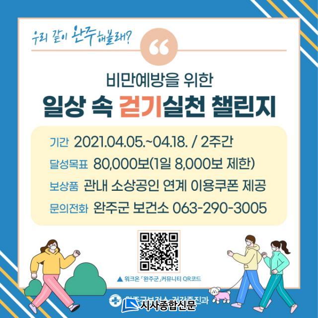 2ÀÏ ¿ÏÁÖ±º º¸°Ç¼Ò´Â Äڷγª19 Àå±âÈ·Î ½ÅüȰµ¿·® °¨¼Ò¿Í ¹è´ÞÀ½½Ä ¼·Ãë·® Áõ°¡¿¡ µû¶ó ºñ¸¸À²ÀÌ »ó½ÂÇϰí ÀÖ¾î ÁֹεéÀÇ ÀÏ»ó ¼Ó °È±â ½ÇõÀ» µ¶·ÁÇÏ´Â °È±â 縰Áö À̺¥Æ®¸¦ ÁøÇàÇÑ´Ù°í ¹àÇû´Ù.