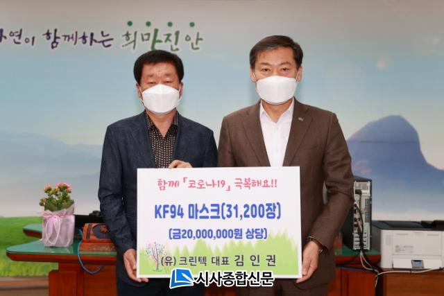 [½Ã»çÁ¾ÇսŹ® = ³²Àç¿Á ±âÀÚ] Áø¾È±ºÀº 2ÀÏ ±º¼ö½Ç¿¡¼ ¸¶½ºÅ© Á¦Ç°»ý»ê°ú °ü¸®¸¦ ÁÖ·Î ÇÏ´Â (À¯)Å©¸°ÅØ(±èÀ뱂 ´ëÇ¥)ÀÌ Áö¿ªÁֹεéÀ» À§ÇÑ ¸¶½ºÅ© ±âºÎ½ÄÀ» °¡Á³´Ù.