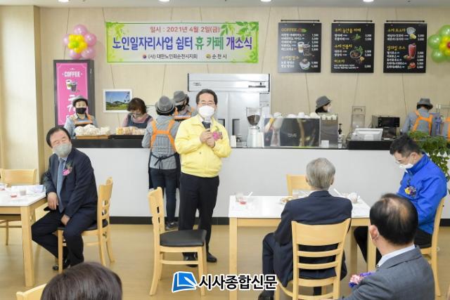 ¼øÃµ½Ã ³ëÀÎȸ°ü °Ç¹° 1Ãþ ·Îºñ¿¡ À§Ä¡ÇÑ Ä«Æä´Â ³ëÀÎÀÏÀÚ¸®»ç¾÷ ½ÃÀåÇü»ç¾÷´Ü¿¡¼ 4¹øÂ°·Î °³¼ÒÇÑ ½Ç¹öÄ«Æä·Î ³ëÀÎÀÏÀÚ¸® ¹Î°£¼öÇà±â°üÀÎ (»ç)´ëÇѳëÀÎȸ ¼øÃµ½ÃÁöȸ¿¡¼ ¿î¿µÇÑ´Ù.